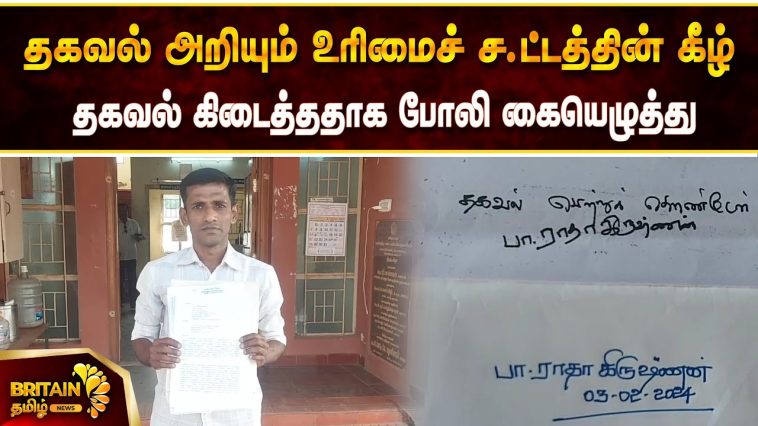 தனது கையெழுத்தை போலியாக பதிவிட்ட அரசு அதிகாரிகள் மீது நடவடிக்கை எடுக்க வேண்டும் என இளையான்குடி காவல் நிலையத்தில் சமூக ஆர்வலர் ராதாகிருஷ்ணன் புகார் அளித்தார். ஆனால் இதுவரை இளையான்குடி காவல் நிலையத்தில் வழக்கு பதிவு செய்யவில்லை எனக் கூறி இன்று சிவகங்கை மாவட்ட காவல்துறை கண்காணிப்பாளர் அரவிந்த் – தனை நேரில் சந்தித்து புகார் மனு அளித்தார். தகவல் அறியும் உரிமை சட்டத்தின் கீழ் உரிய விளக்கம் தராமல், விளக்கம் தந்ததாக போலியாக அரசு அதிகாரிகள் கையெழுத்திட்ட சம்பவம் ஜனநாயகத்தை கேள்விக்குறியாக்கியுள்ளது.