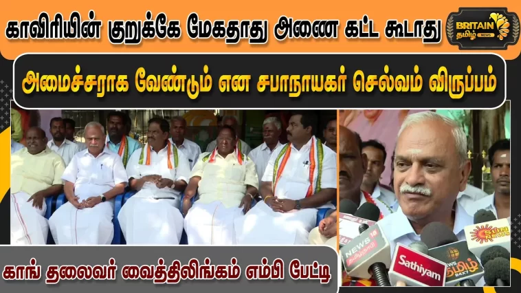 காவிரியின் குறுக்கே மேகதாது அணை கட்ட கூடாது என்பதை புதுச்சேரி காங்கிரஸ் கட்சி வலியுறுத்தும் என்ற காங் தலைவர் வைத்திலிங்கம் எம்பி,