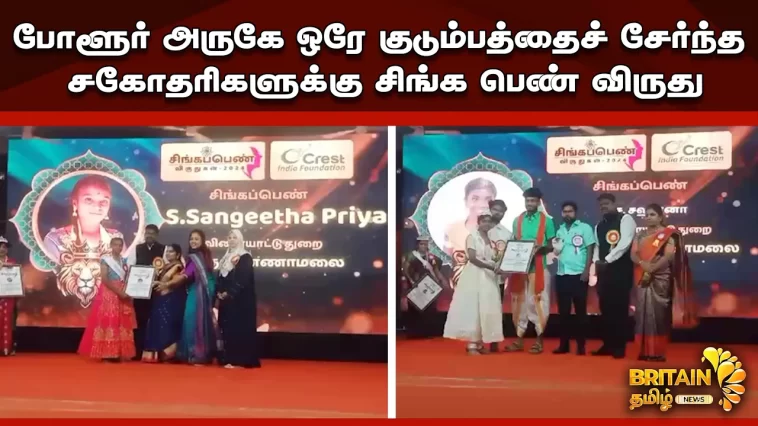 போளூர் அருகே ஒரே குடும்பத்தைச் சேர்ந்த சகோதரிகளுக்கு சிங்க பெண் விருது