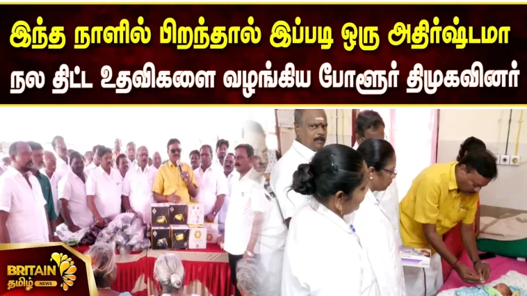 திருவண்ணாமலை மாவட்டம் போளூரில் தமிழ்நாடு முதல்வர் மு க ஸ்டாலினின் 71 வது பிறந்தநாள் தினத்தை முன்னிட்டு திருவண்ணாமலை வடக்கு மாவட்ட விளையாட்டு மேம்பாட்டு அணி சார்பில் அரசு மருத்துவமனையில் மார்ச் 1 ஸ்டாலின் பிறந்த தினம் அன்று பிறந்த இரண்டு குழந்தைகளுக்கு தங்க மோதிரத்தை திமுக வடக்கு மாவட்ட செயலாளர் எம்.எஸ்.தரணிவேந்தன் அணிவித்து வாழ்த்துக்களை தெரிவித்தார் மேலும் மருத்துவமனையில் உள்ள நோயாளிகளுக்கு பிரட், பழங்கள் உள்ளிட்ட பொருட்களை வழங்கி நலம் விசாரித்தார்.