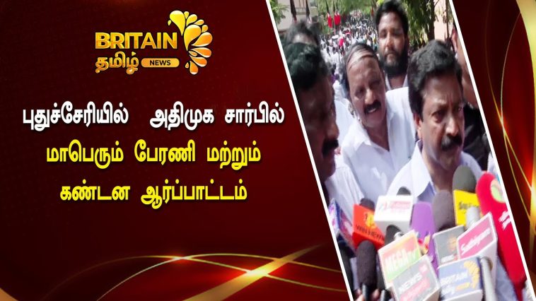 புதுச்சேரி மாநிலத்திற்கு மாநில அந்தஸ்து வழங்காதது, மத்திய நிதிக் குழுவில் புதுச்சேரி மாநிலத்தை இணைக்காதது, மத்திய அரசைக் கண்டித்தும், புதுச்சேரியை ஆளும் அரசு, ரேஷன் கடைகளைத் திறக்காதது, பொது விநியோகத் திட்டத்தை அமல்படுத்தாதது உள்ளிட்ட பல்வேறு பிரச்சனைகளை முன்னிறுத்தி புதுச்சேரியில் அதிமுக சார்பில் மாபெரும் பேரணி மற்றும் கண்டன ஆர்ப்பாட்டம் நடைபெற்றது ஏ.எப்.டி மைதானத்தில் தொடங்கியது. இந்த ஆர்ப்பாட்டத்திற்கு அதிமுக செயலாளரும், முன்னாள் அமைச்சருமான சி.வி.சண்முகம், எம்.பி தலைமை தாங்கினார். புதுச்சேரி மாநில அதிமுக செயலாளரும், முன்னாள் சட்டமன்ற கட்சி தலைவருமான அன்பழகன் முன்னிலை வகித்தார்.இந்த பேரணி ஆர்ப்பாட்டமானது ஏ.எப்.டி மைதானத்தில் தொடங்கி வெங்கடசுப்பாரெட்டியார் சிலை, அண்ணாசாலை, நேருவீதி, மிஷன்வீதி வழியாக சென்று சட்டப்பேரவை அருகே ஆர்ப்பாட்டம் நடைபெற்றது. இந்த ஆர்ப்பாட்டத்தில் ஐயாயிரத்திற்கும் மேற்பட்ட அதிமுக நிர்வாகிகள், தொண்டர்கள் திரளாக கலந்துகொண்டனர்.