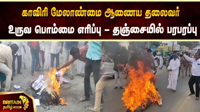 காவிரி மேலாண்மை ஆணைய தலைவர் உருவ பொம்மையை எரித்து போராட்டத்தில் ஈடுபட்டதால் பரபரப்பு