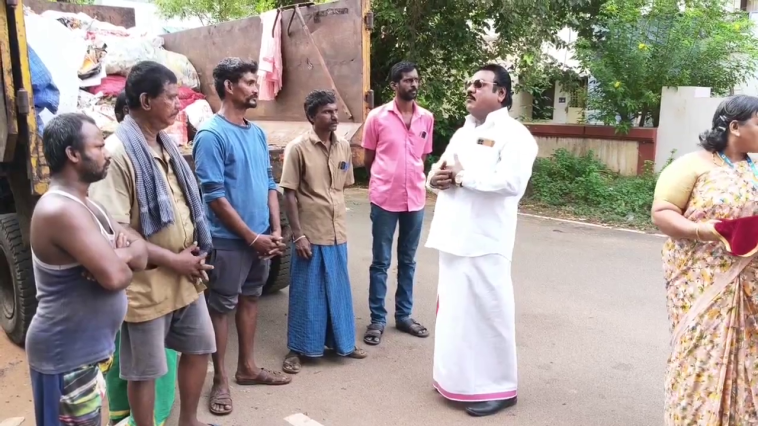 நாளை விஜயகாந்த் பிறந்த நாளை முன்னிட்டு, நாட்டை சுத்தப்படுத்தி வரும் தூய்மை பணியாளர்களை கெளரவப்படுத்தும் வகையில் விஜயகாந்த் சாயலில் உள்ள நாமக்கல் விஜய்காந்த் கணேஷ் தஞ்சை சாலையில் தூய்மை பணியில் ஈடுபட்டு இருந்த தூய்மை பணியாளர்களை நேரில் சந்தித்து உதவி தொகை வழங்கினார்.