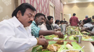 பின்னர் அனைவருக்கும் அவரது கையால் அசைவ உணவு பரிமாறினார்.