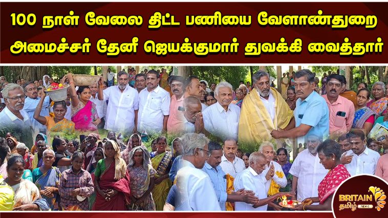 100 நாள் வேலை திட்ட பணியை வேளாண்துறை அமைச்சர் தேனீ ஜெயக்குமார் துவக்கி வைத்தார்