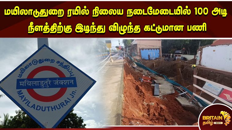 மயிலாடுதுறை ரயில் நிலைய நடைமேடையில் 100 அடி நீளத்திற்கு இடிந்து விழுந்த கட்டுமான பணி