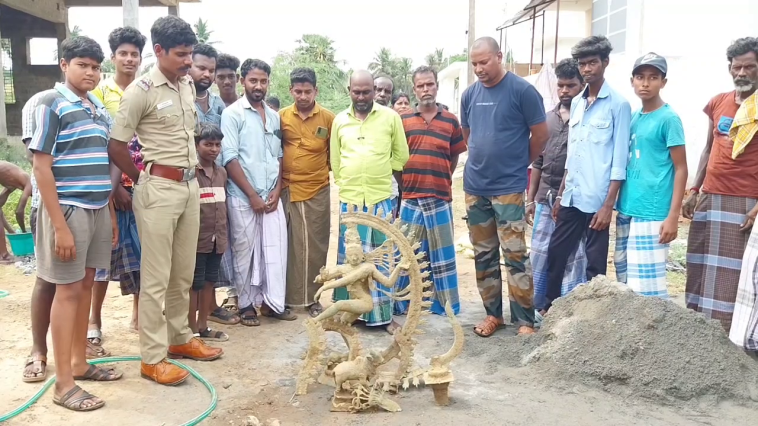 100 கிலோ எடை கொண்ட 3 அடி உயரமுள்ள நடராஜர், நந்தி திருவாச்சி சிலைகள் கண்டெடுப்பு