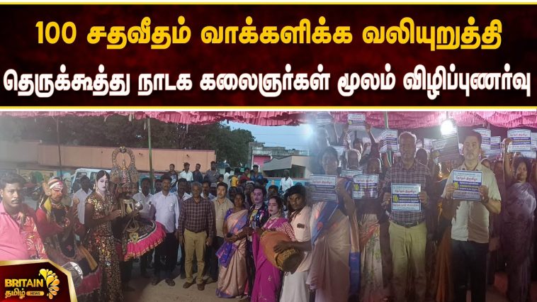 100 சதவீதம் வாக்களிக்க வலியுறுத்தி தெருக்கூத்து நாடக கலைஞர்கள் மூலம் விழிப்புணர்வு