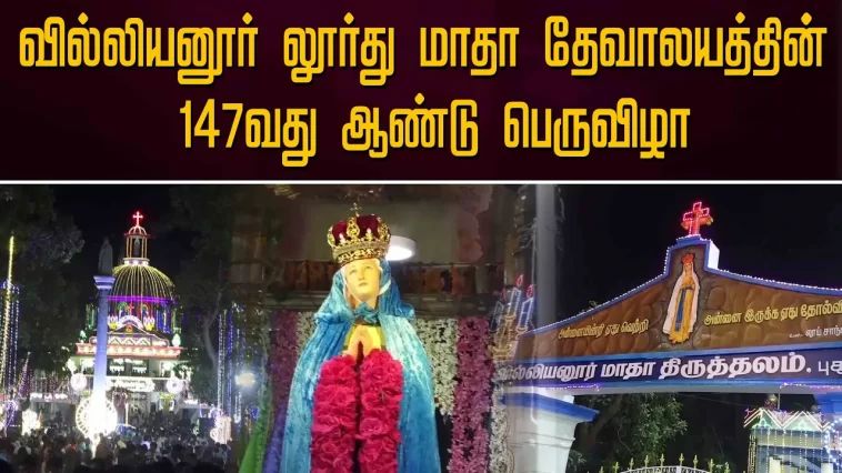 புதுச்சேரியில் மிகவும் பிரசித்தி பெற்ற வில்லியனூர் லூர்து மாதா தேவாலயத்தின் 147வது ஆண்டு பெருவிழாவையொட்டி நடைபெற்ற ஆடம்பர தேர்பவனியில் ஆயிரக்கணக்கான கிறிஸ்தவர்கள் கலந்துகொண்டனர்