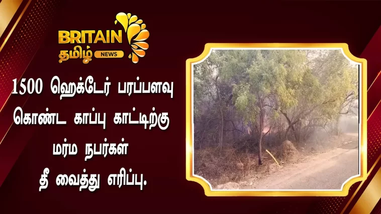 1500 ஹெக்டேர் பரப்பளவு கொண்ட காப்பு காட்டிற்கு மர்ம நபர்கள் தீ வைத்து எரிப்பு