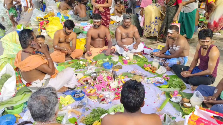 இன்று ஆடி மாத அமாவாசையை முன்னிட்டு அதிகாலை முதலே மயிலாடுதுறை மற்றும் அதன் சுற்று வட்டார பகுதி கிராமப்புறங்களைச் சேர்ந்த நூற்றுக்கணக்கான முன்னோர்களுக்கு திதி அளித்து வழிபாடு செய்தனர்.