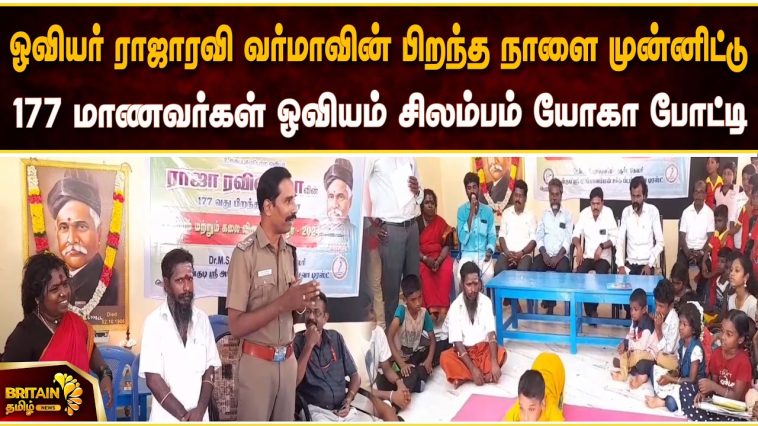 உலகப் புகழ்பெற்ற ஓவியர் ராஜாரவி வர்மாவின் பிறந்த நாளை முன்னிட்டு 177 மாணவர்கள் ஓவியம் சிலம்பம் யோகா உள்ளிட்ட போட்டிகளில் பங்கேற்பு.