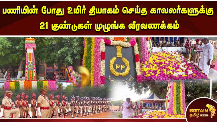 பணியின் போது உயிர் தியாகம் செய்த காவலர்களுக்கு 21 குண்டுகள் முழுங்க வீரவணக்கம்