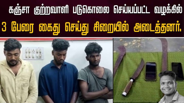 கஞ்சா குற்றவாளி படுகொலை முக்கிய குற்றவாளிகள் 3 பேரை கைது செய்து ஆயுதங்கள் பறிமுதல்
