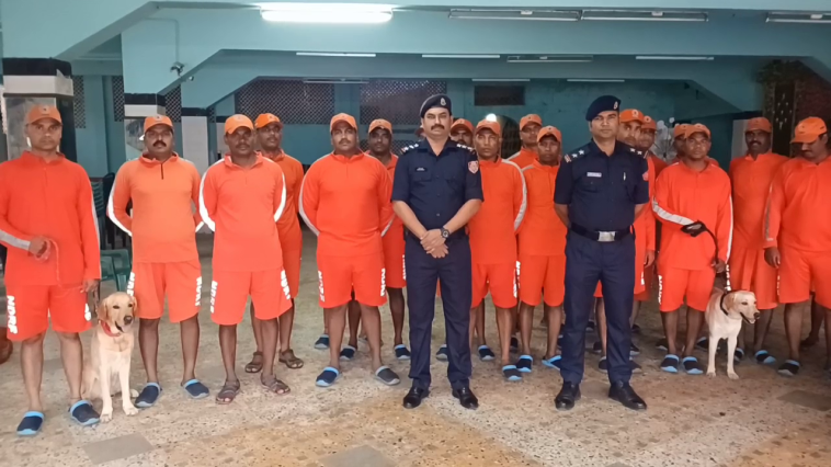 மயிலாடுதுறை மாவட்டத்தில் கனமழையை எதிர்கொள்ள தேசிய பேரிடர் மீட்பு படையினர் 30 பேர் வருகை, கருவிகள், ரப்பர் படகு, இரண்டு மோப்ப நாய்களுடன் தயார் நிலையில் உள்ளனர்.
