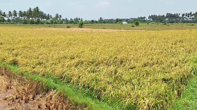 நெல்மணிகளை காயவைக்கும் பணியில் விவசாயிகள் ஈடுபட்டு வருகின்றனர். நெல் கொள்முதல் ஈரப்பதத்தை உயர்த்த கோரிக்கை.