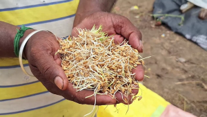 நாளொன்றுக்கு ஆயிரம் மூட்டைகள் கொள்முதல் செய்யப்படும் நிலையில் கடந்த மூன்று தினங்களாக மாலை வேலைகளில் பெய்யும் மழை காரணமாக நெல்மணிகள் நனைந்து முளைத்து வருகிறது.