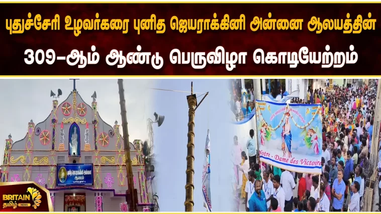 புதுச்சேரி உழவர்கரை புனித ஜெயராக்கினி அன்னை ஆலயத்தின் 309-ஆம் ஆண்டு பெருவிழா கொடியேற்றத்துடன் தொடங்கியது.