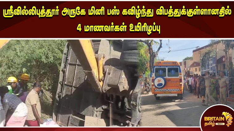 ஸ்ரீவில்லிபுத்தூர் அருகே மினி பஸ் கவிழ்ந்து விபத்துக்குள்ளானதில் 4 மாணவர்கள் உயிரிழப்பு