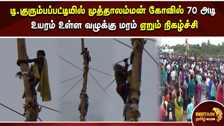டி.குரும்பப்பட்டியில் முத்தாலம்மன் கோவில் 70 அடி உயரம் உள்ள வழுக்கு மரம் ஏறும் நிகழ்ச்சி