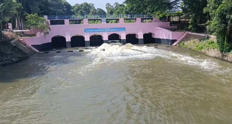 காவிரி ஆற்றின் கடைசி கதவணையில் இருந்து வினாடிக்கு 750 கன அடி தண்ணீர் திறப்பு, கடல் சீற்றம் காரணமாக தண்ணீர் வடிவதில் தாமதம் ஏற்பட்டுள்ளது