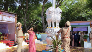 தஞ்சை ஆயுதப்படை மைதானத்தில் நடந்த 79வது சுதந்திர தின விழாவில் மாவட்ட ஆட்சியர் பிரியங்கா பங்கஜம் தேசிய கொடியினை ஏற்றி வைத்து, மூவர்ண பலூன்களையும், சமாதான புறாக்களையும் பறக்க விட்டார்.