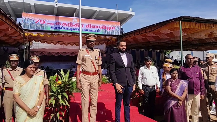இந்திய திருநாட்டின் 79-வது சுதந்திர தின விழா நாகப்பட்டினத்தில் இன்று கோலாகலமாக கொண்டாடப்பட்டது. மாவட்ட விளையாட்டு அரங்கில் நடைபெற்ற சுதந்திர தின விழாவில், ஆட்சியர் ஆகாஷ் தேசிய கொடியை ஏற்றிவைத்து, காவல்துறையின் அணிவகுப்பு மரியாதையை ஏற்றுக்கொண்டார்.
