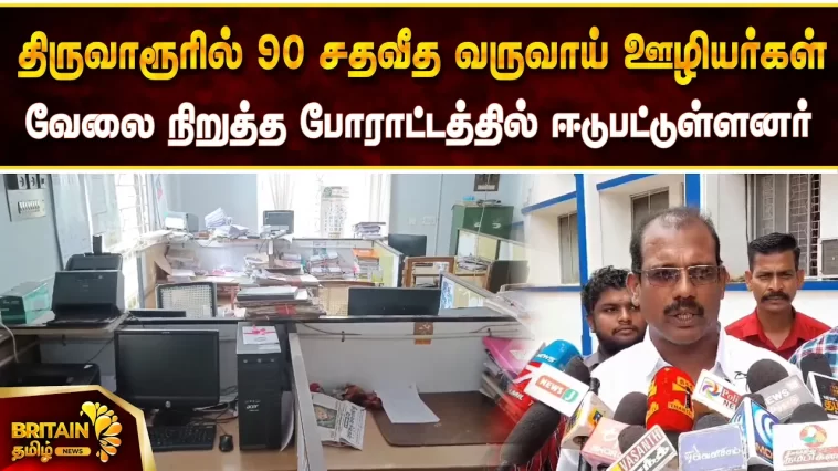 திருவாரூர் மாவட்டத்தில் 90 சதவீத வருவாய் ஊழியர்கள் வேலை நிறுத்த போராட்டத்தில் ஈடுபட்டுள்ளனர். மாநில பொருளாளர் சோம சுந்தரம் பேட்டி