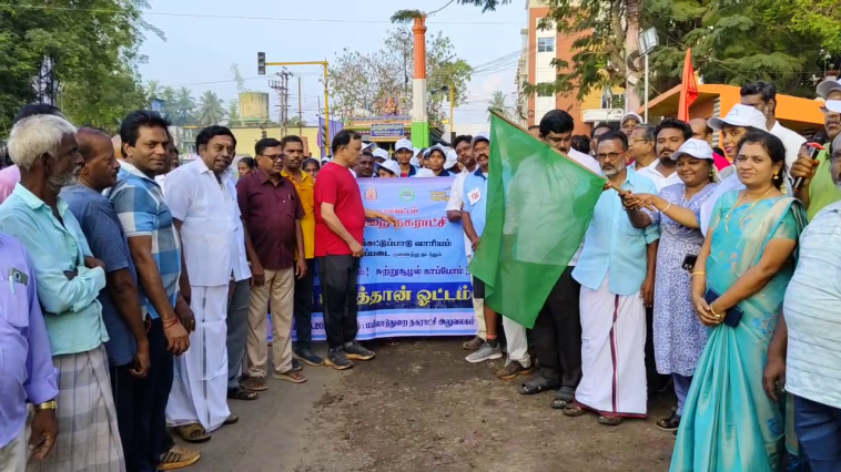 பிளாஸ்டிக் பொருட்களை தவிர்த்து சுற்றுச்சூழலை பாதுகாக்க வலியுறுத்தி, மயிலாடுதுறையில் நடைபெற்ற தேனி மாரத்தான் போட்டியை ஹரிஹரன் மாவட்ட காவல்துறை கண்காணிப்பாளர் கொடி அசைத்து துவக்கி வைத்தார். நூற்றுக்கணக்கானோர் ஆர்வமுடன் பங்கேற்பு.