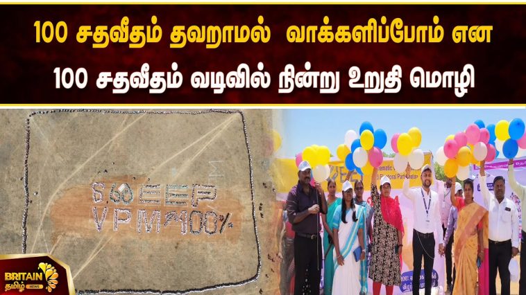 100 சதவீதம் தவறாமல் வாக்களிப்போம் என 100 சதவீதம் வடிவில் நின்று உறுதி மொழி