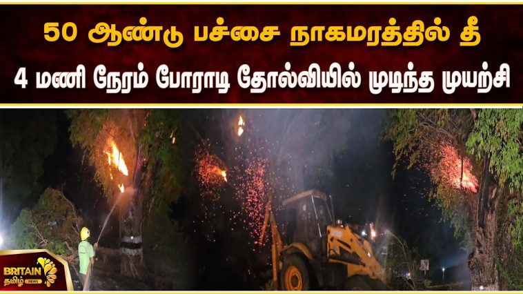 நெடுஞ்சாலையில் 50 ஆண்டு நாகமரம் பச்சை மரம், தீ பற்றி எரிந்தது