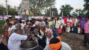 பின்னர் நேர்த்திக் கடனாக செலுத்தப்பட்ட 50 ஆடுகள் பலியிடப்பட்டு சமைக்கப்பட்டன. 100 மூடை அரிசியில் சாதம் தயாரானது. இந்த கறி விருந்து அங்கு கூடியிருந்த சுமார் 3 ஆயிரத்திற்கும் மேற்பட்ட ஆண்களுக்கு சாதமும், ஆட்டுகறி குழம்பும் பிரசாதமாக பறிமாறப்பட்டது.