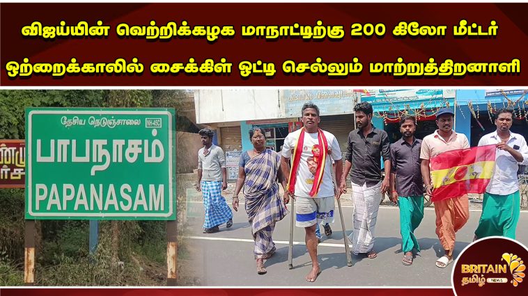 விஜய்யின் வெற்றிக்கழக மாநாட்டிற்கு 200 கிலோ மீட்டர் ஒற்றைக்காலில் சைக்கிள் ஓட்டி செல்லும் மாற்றுத்திறனாளி