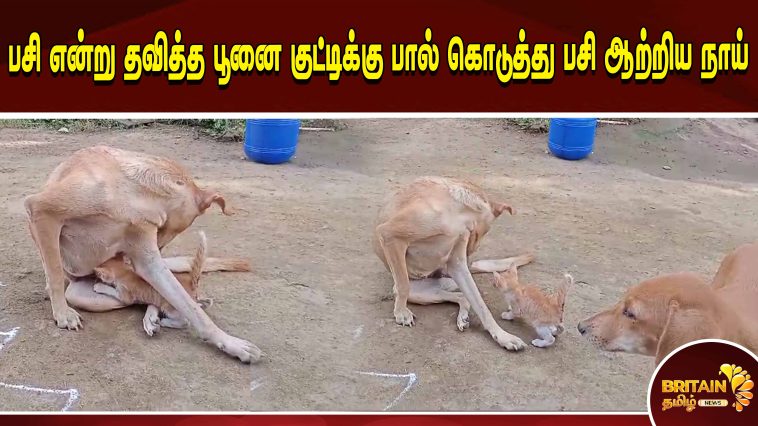 எதிரியாய் இருந்தாலும் பசின்னு வரும்போது அவனுடைய பசியை ஆற்றணும் அதுதான் மனிதாபிமானம்…. பசியோடு தவித்த பூனை குட்டிக்கு பால் கொடுத்து பசியாற்றிய நாயின் கருணை உள்ளம்