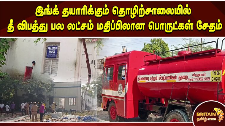விருதுநகர் பேராலி சாலையில் முரளி என்பவருக்கு சொந்தமான அட்டைப்பெட்டிக்கு இங்க் தயாரிக்கும் தொழிற்சாலையில் தீ விபத்து. கட்டிடம் உட்பட பல லட்சம் மதிப்பிலான பொருட்கள் சேதம்.