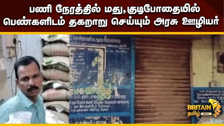 திருச்சி சிந்தாமணி நியாய விலை கடையில் பணி நேரத்தில் மது அருந்துவதும், குடிபோதையில் அங்கு வரும் பெண்களிடம் தகறாறு செய்யும் அரசு ஊழியர்