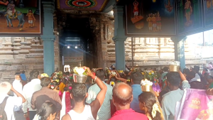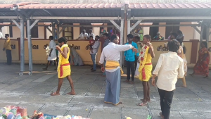 திருக்கடையூர் ஆனைக்குளம் ஸ்ரீ காளிஸ்வரர் கோவிலிருந்து 1008 பால்குடங்கள் ஏந்தி 2000 க்கும் மேற்பட்ட பக்தர்களுடன் பிரமாண்ட ஊர்வலம் வந்து கோவிலை அடைந்தனர். அப்போது தருமை ஆதீனம் 27 வது குருமகா சன்னிதானம் ஸ்ரீலஸ்ரீ மாசிலாமணி தேசிக ஞான சம்பந்த பரமச்சாரிய சுவாமிகள் அருளாசி வழங்கி வரவேற்றார்.