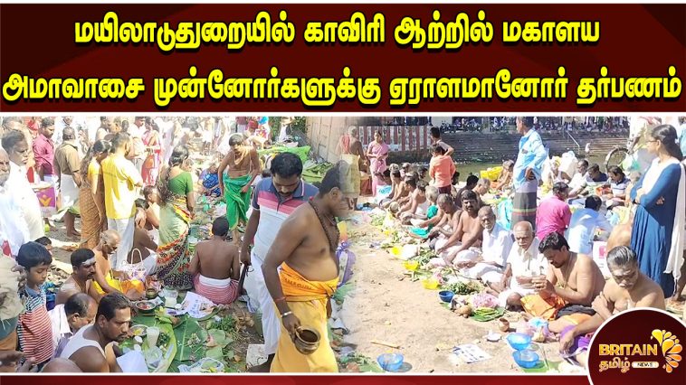 மயிலாடுதுறையில் காவிரி ஆற்றில் மகாளய அமாவாசை முன்னோர்களுக்கு ஏராளமானோர் தர்பணம்