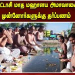 மகாளய அமாவாசையை முன்னிட்டு மயிலாடுதுறையில் காவிரி ஆற்றில் 16 தீர்த்தக் கிணறுகள் அமைந்துள்ள புனித துலாக்கட்டத்தில் முன்னோர்களுக்கான திதி கொடுத்து பலிகர்ம பூஜைகள் செய்து, பக்தர்கள் வழிபாடு.