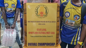 சென்னையில், மாநில அளவில் ஆதரவற்ற பள்ளி விடுதி மாணவ, மாணவிகளுக்கு இடையில் நடந்த விளையாட்டு மற்றும் கலை நிகழ்ச்சிகள் போட்டியில் ஓட்டுமொத்த சாம்பியன் கோப்பை வென்று தஞ்சைக்கு ரயிலில் வந்து இறங்கிய மாணவ, மாணவிகளுக்கு பேண்ட் வாத்திய இசையுடன் உற்சாக வரவேற்பு அளிக்கப்பட்டது.