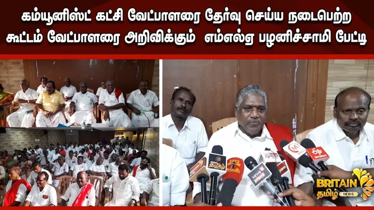 நாகை நாடாளுமன்ற தொகுதி இந்திய கம்யூனிஸ்ட் கட்சி வேட்பாளரை தேர்வு செய்ய நடைபெற்ற கருத்து கேட்டு கூட்டத்தில் பத்துக்கும் மேற்பட்டோர் போட்டியிட விருப்பம் தெரிவித்ததால் மாநிலத் தலைமை வேட்பாளரை அறிவிக்கும் என முன்னாள் எம்எல்ஏ பழனிச்சாமி பேட்டி