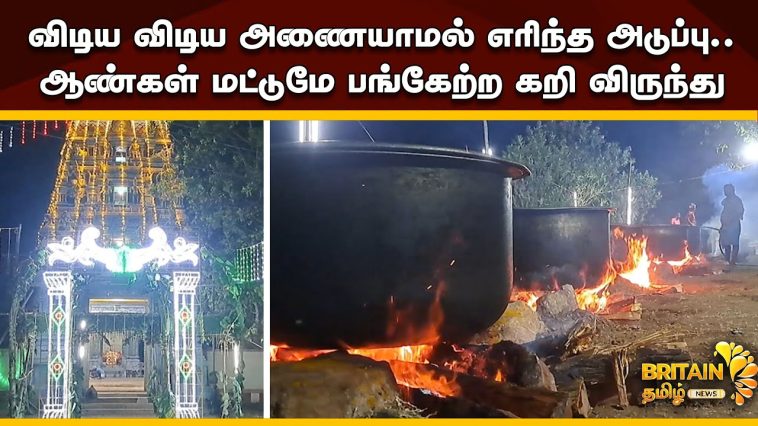விடிய விடிய அணையாமல் எரிந்த அடுப்பு ஆண்கள் மட்டுமே பங்கேற்ற கறி விருந்து
