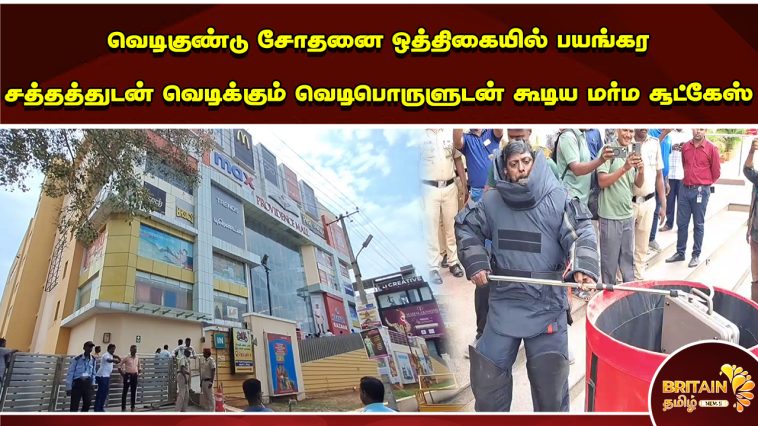 தீபாவளி பண்டிகையை முன்னிட்டு பொது மக்களுக்கு விழிப்புணர்வை ஏற்படுத்தும் வகையில் நடைபெற்ற வெடிகுண்டு சோதனை ஒத்திகையில் பயங்கர சத்தத்துடன் வெடிக்கும் வெடிபொருளுடன் கூடிய மர்ம சூட்கேஸை போலீசார் மீட்டனர், இதனால் வெடிகுண்டு சோதனை நடைபெற்ற வணிக வளாகத்தில் பரபரப்பு ஏற்பட்டது.