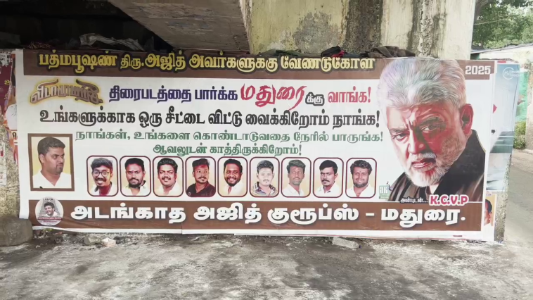 விடாமுயற்சி திரைப்படத்தை பார்க்க மதுரைக்கு வாங்க…! உங்களுக்கு ஒரு சீட்டை விட்டு வைக்கிறோம் நாங்க…! மதுரையில் ஒட்டப்பட்ட அடங்காத அஜித் குரூப்ஸ் ரசிகர்களின் போஸ்டர் மக்களின் கவனத்தை ஈர்ப்பு.