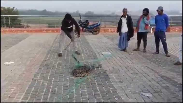 ஆனால் அதிர்ச்சி அளிக்கும் வகையில் வலையில் மலைப்பாம்பு ஒன்று சிக்கியிருந்தது.