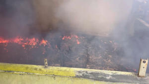 கழிவுநீர் கால்வாய் தீ பற்றி எரிந்ததால் கரும்புகை….. வாகன ஓட்டிகள் அவதி….