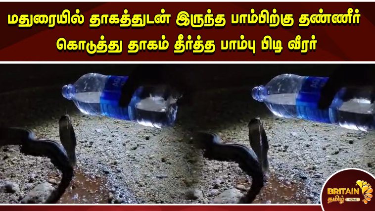 மதுரையில் தாகத்துடன் இருந்த பாம்பிற்கு தண்ணீர் கொடுத்து தாகம் தீர்த்த பாம்பு பிடி வீரர்- வைரல் வீடியோ.