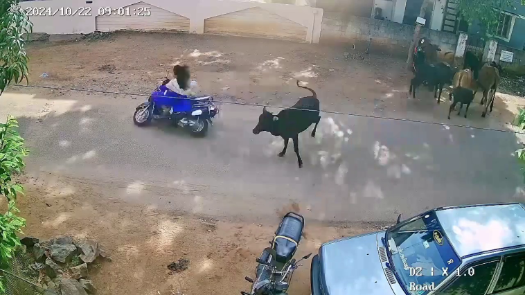நெல்லை 55 வது வார்டு திருமால் நகர் பகுதியில் சாலையில் சுற்றி திரிந்த ஒரு மாடு அந்த வழியாக இருசக்கர வாகனத்தில் சென்ற கல்லூரி மாணவி ஸ்வதிகா மீது எதிர்பாராத விதமாக மோதியதில் நிலை தடுமாறி கீழே விழுந்த அந்த மாணவி பலத்த காயங்களுடன் தற்போது மருத்துவமனையில் சிகிச்சை பெற்று வருகிறார்.