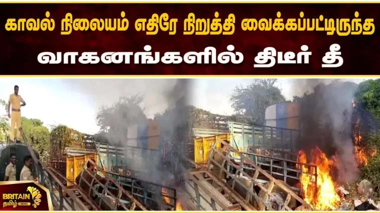 நிலக்கோட்டையில் காவல் நிலையம் எதிரே நிறுத்தி வைக்கப்பட்டிருந்த குற்ற வழக்குகளில் உள்ள வாகனங்களில் திடீர் தீ பிடித்து எரிந்ததால் பரபரப்பு.