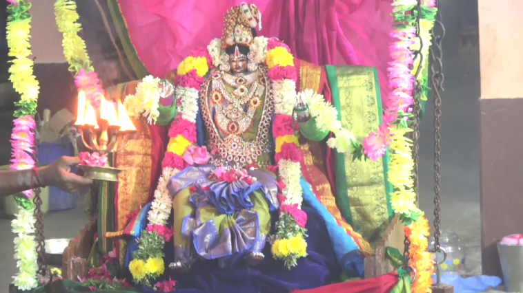 முன்னதாக உற்சவர் விசாலாட்சி அம்பாளை சர்வ அலங்காரத்தில் அலங்கரிக்கப்பட்ட ஊஞ்சலில் எழுந்தருள செய்தனர் தொடர்ந்து பக்தர்கள் ஊஞ்சல் பாடல்களை பாடி அம்மனை வழிபாடு செய்தனர்.